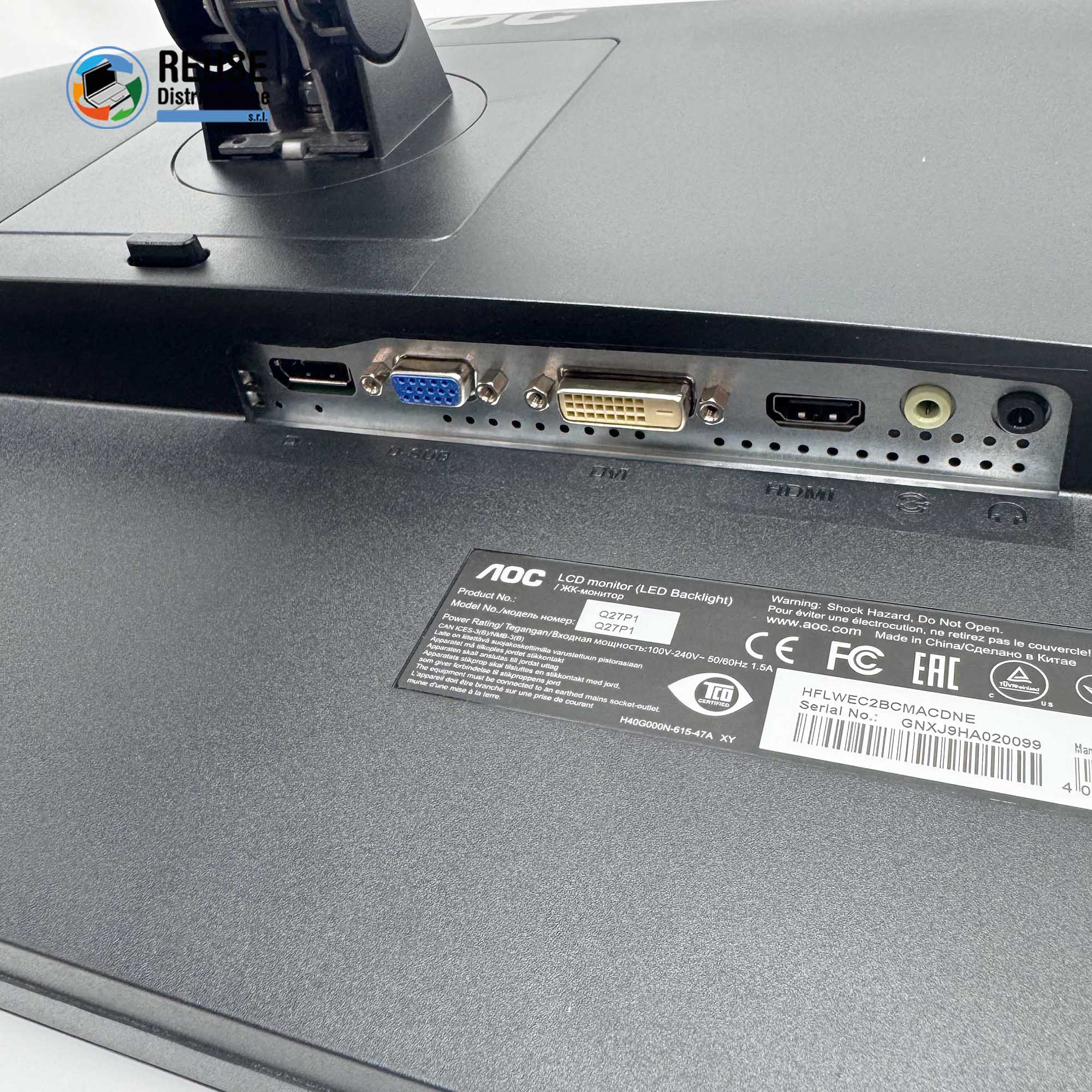 AOC M20 AOC Q27P1, 27″ (2560 x 1440, 1x HDMI 1.4, 1x DisplayPort 1.2, 1x DVI, 1x VGA). Grado Estetico: A-. Input Video: ngresso audio (3.5mm), Uscita cuffie (3.5mm), Altoparlanti integrati (2x 2W). Condizione: Eccellente – Ricondizionato. Difetti: nessuno. ID Prodotto: M20. Altre Specifiche: n.d.
